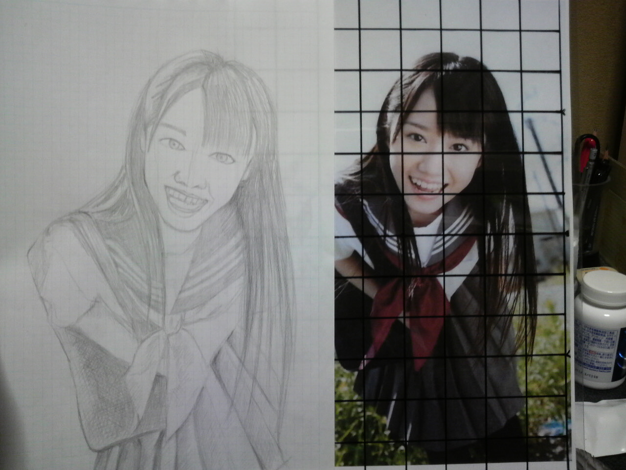 (マス目をひいて模写するのは初めてやってみました)