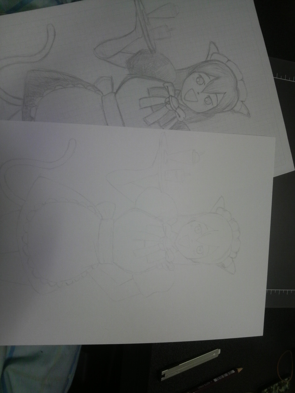 コレは、このあと色鉛筆で塗る為のラフ。もしくは描けるかどうかの試です。