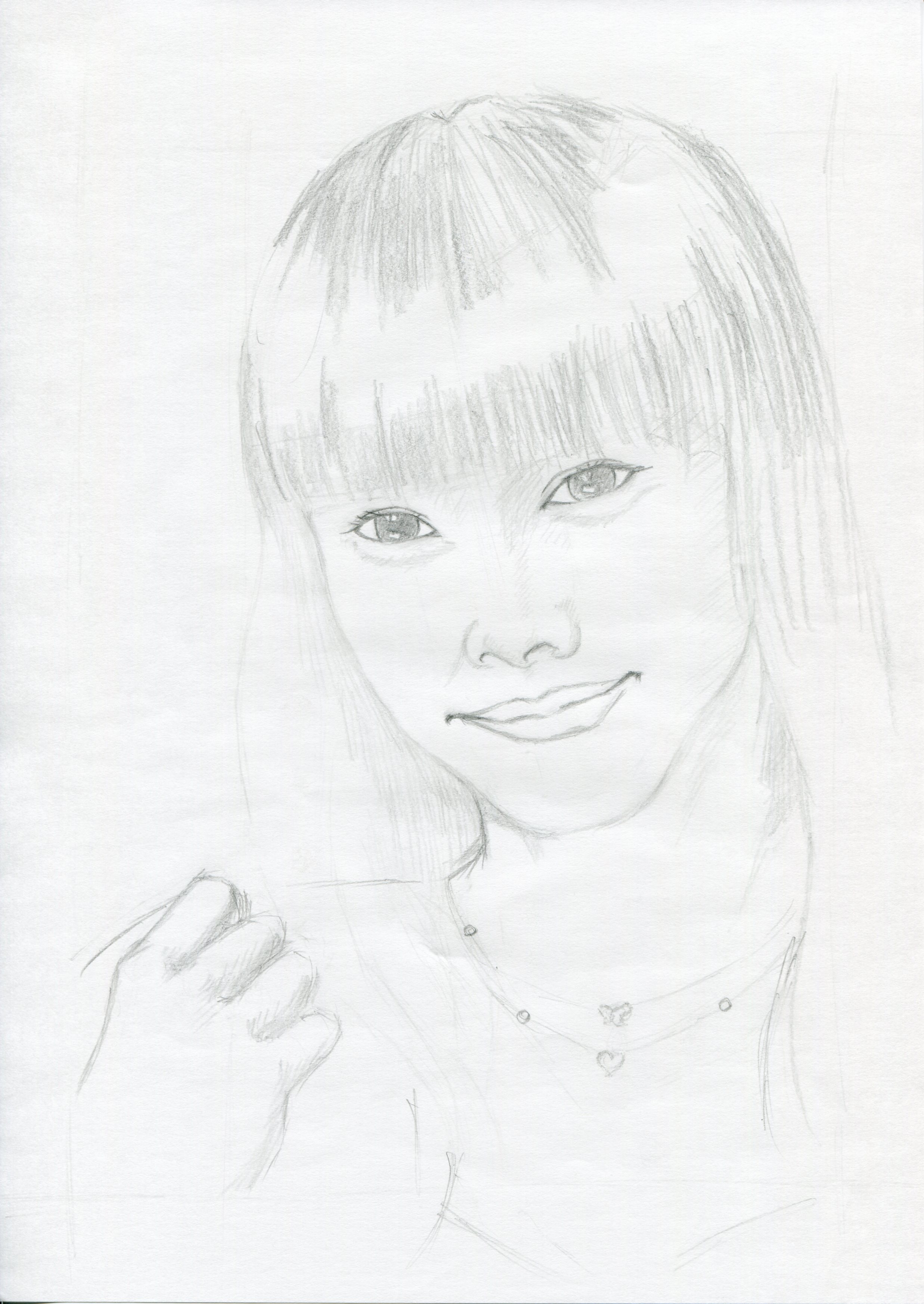 始めは2Hの鉛筆で薄く描き始め、その後HBでなぞって濃くしています。