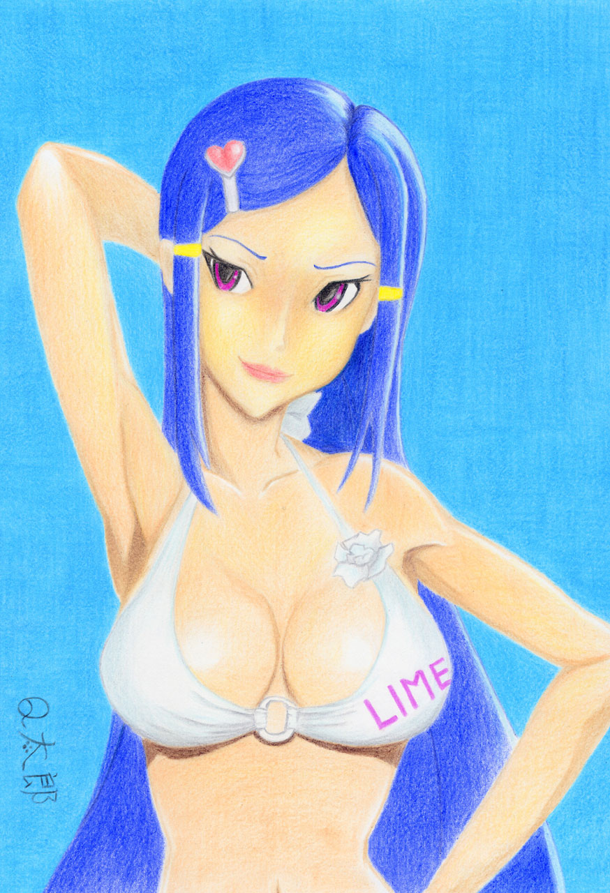 パチスロ、リオシリーズ(メーカー:NET)のRio(リオ)です。 「リオたん!」と呼ばれるぐらいの人気です。 スロット好きな方は、ご存知と思います。 コスチュームが多く、素材となるのもが多いので、描くのが楽しいキャラクターです。 少し前に練習で、スケッチブックに色鉛筆(ホルベインのアーチスト)を使って描いた物です。 スケッチブック:コットマン(青:細目) 色鉛筆:ホルベインのアーチスト