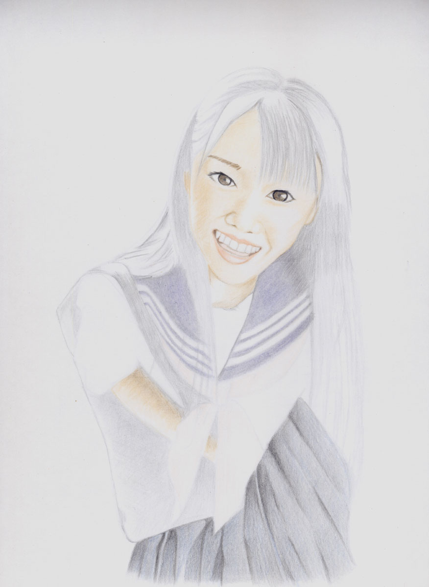 ここでは、特に影の濃い部分、小鼻、目の周り唇の影部分などにポリクロモスの178を薄く塗っています。