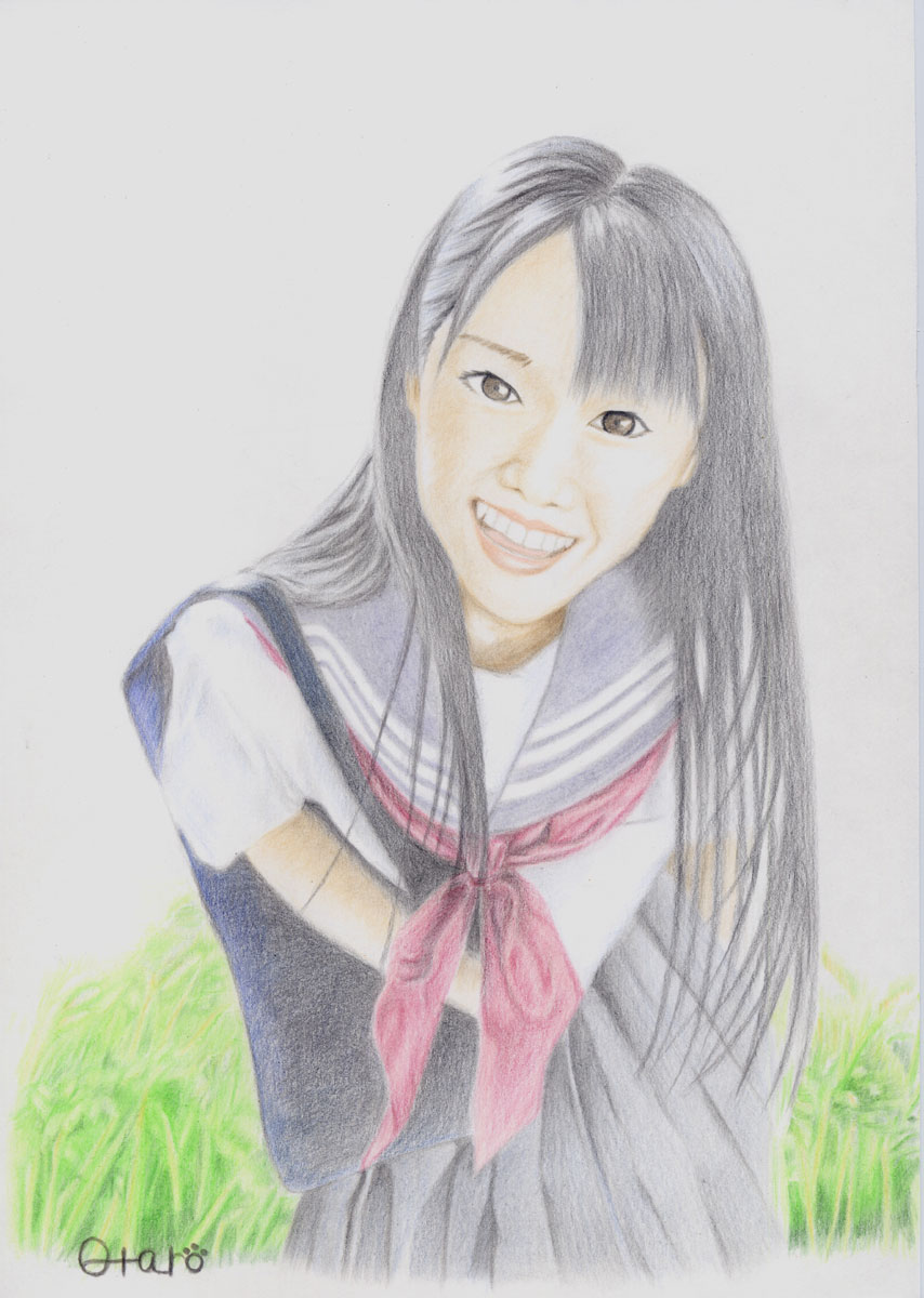 完成しました。 うす塗り仕上げ、セーラー服の少女です。 (正しくはうす塗りではなく、薄く見える塗りです) いかがでしょうか? 詳細は、メイキングブログにて。 まだまだ塗り方などに迷いもありますので、感想などがあればよろしくお願いします。 色鉛筆:ポリクロモスと色辞典 紙:KMKケント