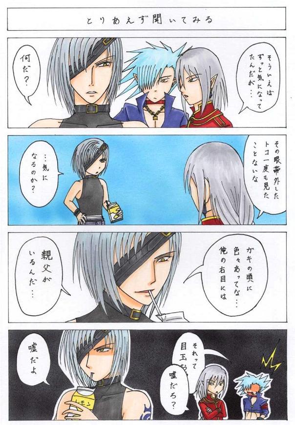 | 説明文 | 以前投稿したイラストの新キャラ「黒耀」、早速出てきましたwww それとあの時点で名前の漢字が仮のモノだったんですが正式に決定しました。 コードネーム:黒耀(こくよう) 本名:剣ヶ峰 識(けんがみね しき)(29) 「ラグナロク」在籍のSランクのアサシン。 メイン武器は日本刀、銘は「黒翼(こくよく)」 とりあえずアサシン兄弟と絡んでみたw ティエリがいつから眼帯が気になっていたのか謎ですが。 クリスが4コマ目で何かを言ってしまいそうになってますが(実際には言ってますがw)コレはもはや説明不要かとwww 識が飲んでるモノは彼の出身地に関係してます。 最近は県外でも売ってますね。 私も近所で買いました。資料用にwwwww 答えは「レモン牛乳」です。 「黒耀」という名前を決めた時から識の出身は栃木県で決定してましたwwwwwww ホントは方言で喋るのかも。なんか日光江戸村とかにいそう。 因みに次回も新キャラ出てきます。 てかもう線画まで終わってるので着色するだけだ・・・ スキャナーが今家に無いから面倒くさくてしょうがない。。 |