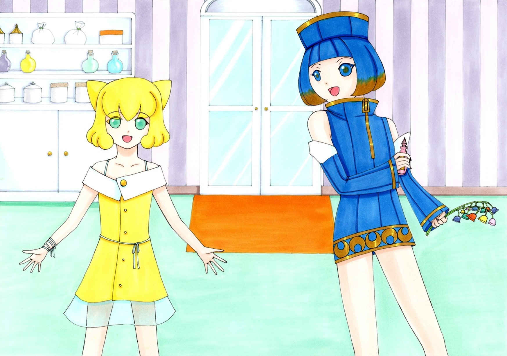 | 説明文 | じゅらく/くちべにさんのキャラ、こはくちゃんとウチのラピス。 じゅらく/くちべにさんの小説「もりのなか」の登場キャラ募集にて作ったのがラピスです。 ラピスに香水屋さんの子、という設定を付けて下さったので脳内妄想を吐き出しておきましたwww こはくちゃんがしんじゅさんのプレゼントに香水を買いに来た・・・みたいなカンジです。 ラピスはきっと調香師としてはまだ見習いだと思いますが、色んな香水を試作してるんじゃないかなぁと。 手にしているのはカラフルすずらんと呼ばれるモノで、この世界ではポピュラーな花ってコトでw きっと白いすずらんとは違って色んな香りがしそうです^^ 因みにリアル世界でのカラフルすずらんは偽物です。 色とりどりでキレイだケド写真加工なんだろうなぁ。 背景は店内イメージですが・・・ こはくちゃんの前に香水が並んだ棚とかテーブルかなんかがあると思って下さい; じゅらく/くちべにさん、こはくちゃんお借りしました~^^; 雰囲気はわりと脳内イメージを再現出来たかも。。 |