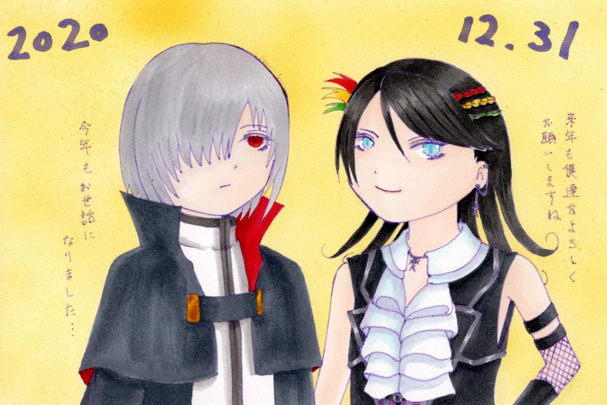 | 説明文 | もうすぐ今年も終わってしまいますね… 今年でしゃばった2人が挨拶させていただきますね笑 春夏はレヴィ、秋冬はデルモントを多めに描いた1年でした たまたまですが2人ともドイツ出身というね 来年は活躍しない予感しかしませんよ(ヒデェ) レヴィはアサシン組の新キャラだし口調や性格も決まってるから4コマで動かしてはいきたいです それでは今年もお世話になりました! 皆さん良いお年を!! |