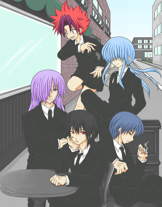 | 説明文 | ハナさーーーーーーん!!! やっと出来たーーーーーー!!!! ハナさんの誕生日からもう2ヶ月近く経ちますな・・・(  ̄▽ ̄) あの時描きかけだった絵がようやく完成しましたぞ! すんごい手間かかってるのに、出来がイマイチでゴメンね!! 人物と背景が合ってないと思われる>パース的な意味でw 自己満足で敵側集めて描いてみましたw 青髪=スネイエス 黒髪=ヴァリクシール 紫髪=エクスセリィ 水色髪=ヒスイ 赤髪=(名前未定) |