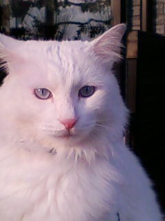我が家のションベンたれの助。真っ白に青い目の美男。