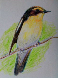 Q太郎さん復活でおいらも久々に色鉛筆絵をアップ♪ キビタキという名の鳥さんです。 あと半月ほどで絵手紙も1周年。 飽き症のおいらがよくもったもんだ(^^♪