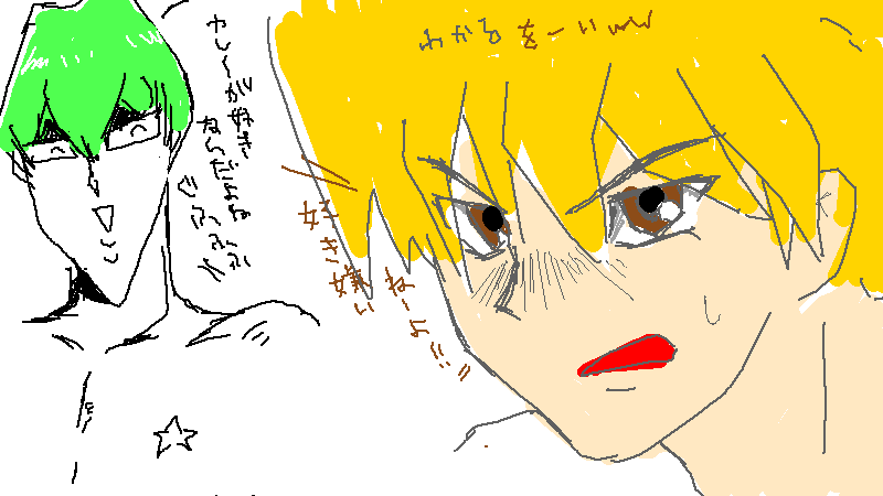 治ってきた。 ホッと一安心、ですねー。 やー、さっき絵茶してたんですがPCが重すぎて話しにならんかったー^^ 曲線が時間差で直線になるという!!! 軽いPC羨ましいぜっ。 ってか絵のうまい人うらやまー^p^ もっと精進したいっす!!