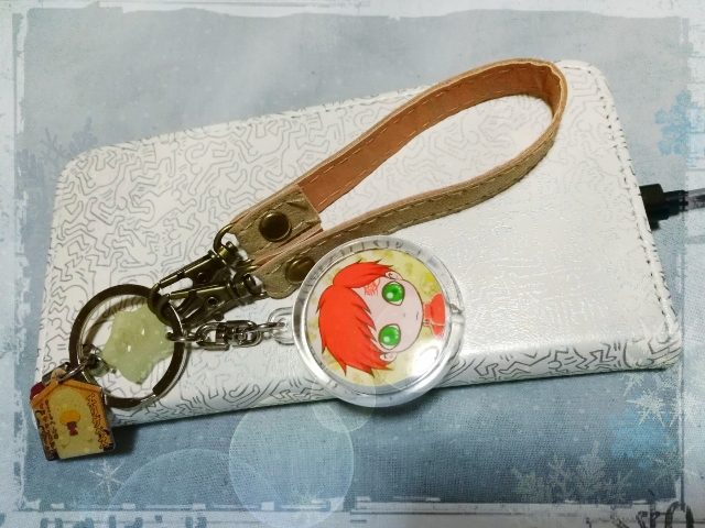 スマホにカバーを付けて、落下防止のストラップ付けて、やっぱりキーホルダーと言うかチャームが付けたいじゃないですが、なのでそれ用に描きおろしました♪ホントはレジンでキラキラ作りたい所ですが腕がないので取り敢えず百均のホルダーに入れ込み〜♪