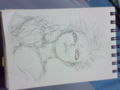 相変わらず3DSでお絵描き♪100均の、小さいクロッキー帳にザクザク描いたラフをカメラで撮影、それをコミック工房にシールで貼り付けて、下絵として使って描き描き♪