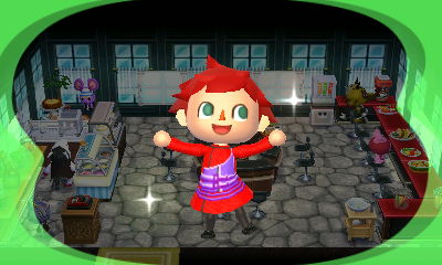 どうぶつの森HHDマイデザインPROで作った我愛羅服、お客さんの家や公共施設でなら着せられる~♪♪このまま外には出られないけどね~…
