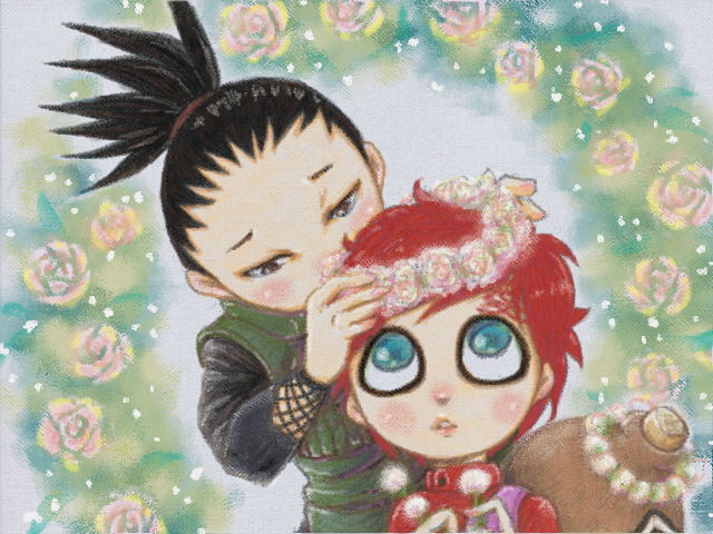 ポケ森のイベントでシロツメ草を見てたら思い出した花冠構図ですが、砂瓢箪に掛けたのはシロツメ草だけど、頭にはグレードアップして薔薇をイメージ。