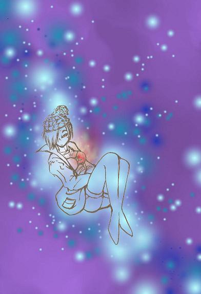 アナログを軽いタッチで着色するのに、ここのしぃを使ってみようと思ってこの、シャーペン絵をまずスキャンして、それを写真として揚げて(写真だと新着イラスト一覧に乗らない)コラボしました。