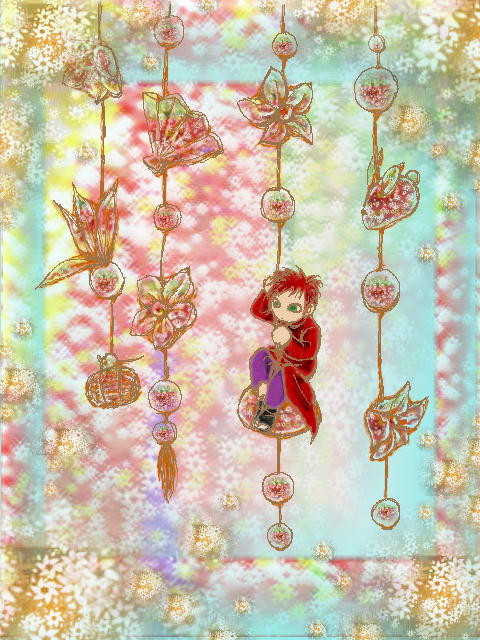 珍しくフル・デジタルで挑戦。 線画はやっぱりストレス・・・ ちりめんっぽい感じを出したくて、別に千代紙っぽいテクスチャを制作してソレを加工して切り抜いてスタンプして・・・と、いろいろやってみた。 作ったテクスチャ、コメント欄に張っときます、使えたら使って下さいね♪