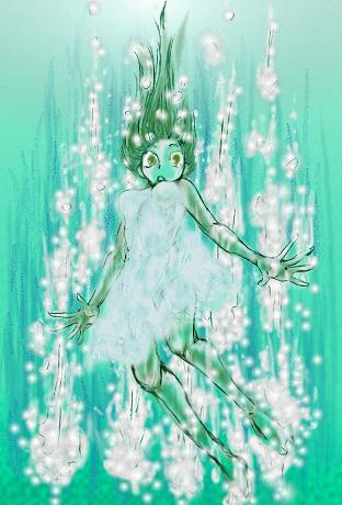 jamさんのCCレモン見たら自分でも炭酸描きたくなったのでした。 ラムネをイメージしましたが、クリームソーダのようだ・・・ 描きたかったポイントは右足、もう少し足を大きく描きたかったな、腰骨から描き起こしました、最終的にワンピースで隠れるんですが、身体描くのが楽しかったです♪