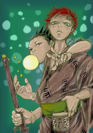 予想以上に人相が悪くなりました、描きたかったのは我愛羅の腰に下げさせたシザーズバッグ(?)着物の本で、男性が小物入れとして重宝するとあったので、砂隠れデザインで描いてみたかったんです。