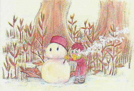 雪は最後に白を、パステルで乗せて、息にはパステルだけでは弱かったので修正液も乗せてます。