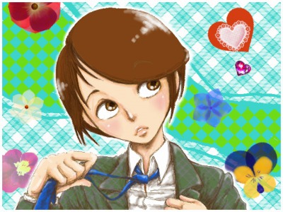フツーで目立たない地味な子なはずだけど、彼に恋してる吉田から見たら、きっと花が咲いてる様なんだろうな…と、描いてる途中で思って、背景をスクラップブックみたいにしました。