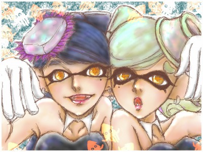明日はフェスです~♪ カミ様からのお告げに従って、一日踊り通す巫女でもある、シオカラーズ。 オリジナルから少し自分寄りに、ちょっと大人を目指しましたが、元々わたしの絵柄が幼いから、なかなかアダルトなテイストになりません!! シオカラ~♪(以下ヨロシク~)