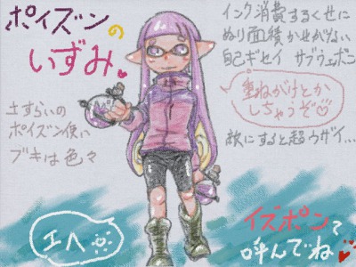 スプリンクラー等、出せば勝手に塗り面積を稼いでくれるサブもある中、ポイズンは敵の足止めだけなので、チーム内で理解して連携出来るチャージャー等が居ると俄然楽しくなるみたい。