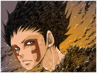 池田さんの描くカンクロウ兄さんは眉が薄いよね、我愛羅と兄弟だから薄くても不思議はないのですが、NARUTOの我愛羅奪還編辺りでサソリと戦って毒に倒れたカンクロウ兄さんは、原作でもアニメでもシッカリした眉だったから、…剃ってる?
