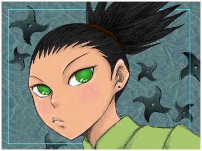 シカマルも狐目三白眼でしたが、それよりキツいテマリ寄りのつり目、瞳はテマリ、我愛羅と同じ緑。