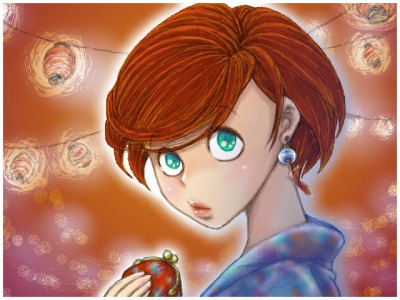 浴衣縁日な愛子を描きたくて。 浴衣の柄にちょっと思い付きなアレンジをしたのですが、結局グラデーションで影を掛けたらよくわかんない事態に… 手にしたガマ口にも応用したんですが、ちょっと絞りッポイ感じで面白いなぁ~♪と思いました♪ 背景は思いきって雰囲気だけ。 宵宮の出店を各自脳内補完してください。
