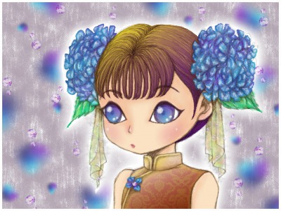 SHOWRIさんのアジサイちゃんにインスパイアされて描きました、名前は藍藍。
