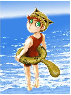 そんな守鶴をモチーフにした水泳帽と浮き輪を描いてみたくなったのです!