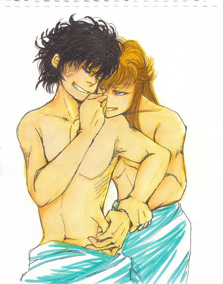 夏バテを警戒してガッツリ食べた結果でしょう、きっと。 じゃれてる絵を描きたかったの。 腹をつかみ合ってるのとか、かわいいなと・・・ サウナとかでさ。 誰でも良かったんだけど、自キャラにしといた。 十円さんがカラス揚げてて、思い出した。ひどい・・・ キツネとカラス。 イチャイチャが不足してる・・・