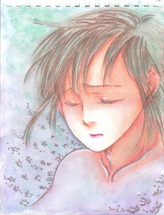 複雑な表情を目指しましたが、己のメンタルに引きずられて深刻方面に傾きました・・・戻そうと肌にピンクを入れ、背景に花を飛ばしてみたらまたとっちらかった印象に・・・