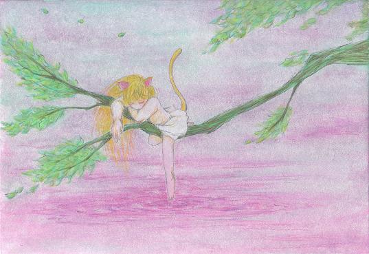 これは、ピンクとグリーンの組み合わせの美しい映像を見て、その色の組み合わせで描きたいと思って、色を絞りました。