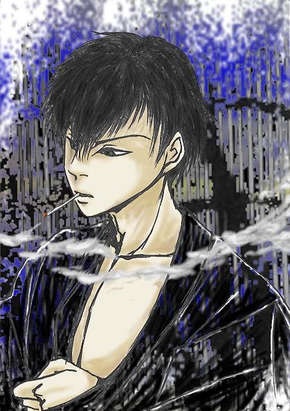 自作テクスチャ夏草影をフューチャーしたくて描いた土方十四郎さんですが、テクスチャの効果は有効に引き出せていないね・・・うん、これも勉強、というか遊びです(^^)/