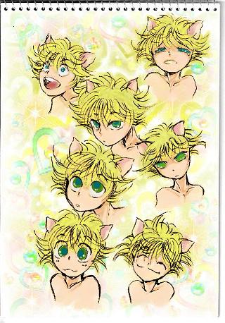 ループの基本性格は猫+幼児と言う感じなので、移り気で気まぐれ・・・なはず。 しかし描いてると人なつっこい感じになってしまうのね、なぜだろう。 アナログで描いたスケッチブックを輪郭ごとスキャンして、背景にはまたDSプリクラを入れ込んでみた。 でもやっぱり、全身入れ込んで、動き込みの身表情の方が描いてて楽しいだろうな。