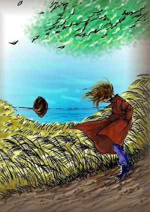 このシーズンには、このコートが着れるのがうれしい。 リサイクル屋で500円だった、多分手作り、陽に焼けて肩のとこ色が変わっちゃってるけど気にしない。色と着易さと軽さと風をはらむ感じが好き。 トンボが居なかったのが残念だなぁ~・・・ 晴れてればこんな感じかな?と思って描きました。星ヶ山公園近く。
