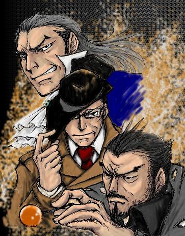 上から、狩魔豪49才、御剣信34才、馬堂一徹42才(全て18年前設定)