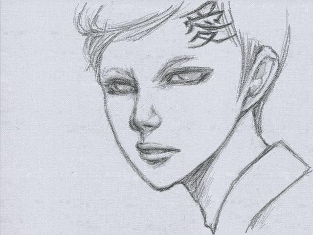 昨日、幻影の中の我愛羅を描いたら、もっと描きたくなったんですよ、日頃からわたしが描く我愛羅は妄想ですし、幼児姿も節操なく描いているから今更なんですが、原作の中で、ああいう形で存在しなかった過去を提示されて、その幻影を大きく膨らませてガッツリ堪能したい!と言う欲望が…新絵心教室で、ラフを一枚ペタリ。