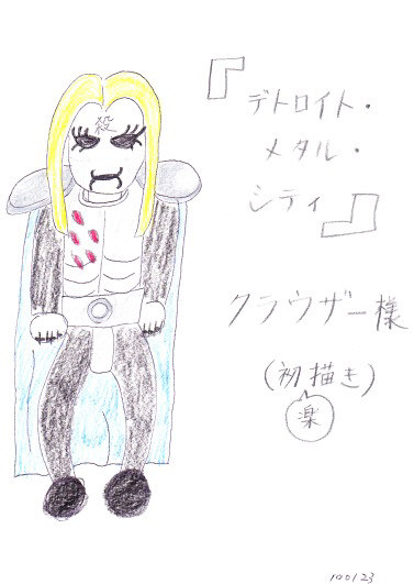 見捨てないで~(笑) っというわけでどんなわけで、まだバトン絵は描けてないので別の絵でお茶を濁しときます(^^;ゞ今年の1月に描いてアップし忘れてた、DMCこと『デトロイト・メタル・シティ』のクラウザー様落書きです。実写映画版のね。