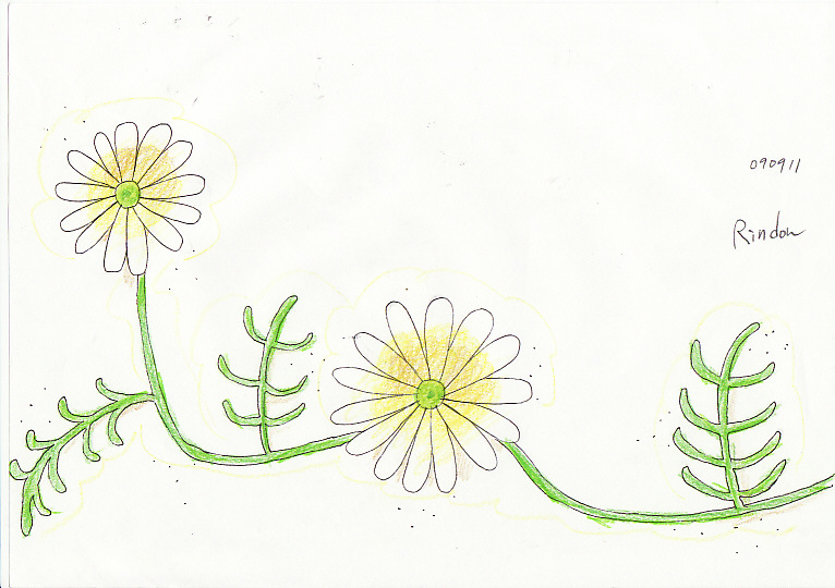 「手順式 1日10分で絵がうまくなる水彩画ドリル」著:吉沢深雪 より、花の模写です。今思えば、色があちこちはみ出してます…。