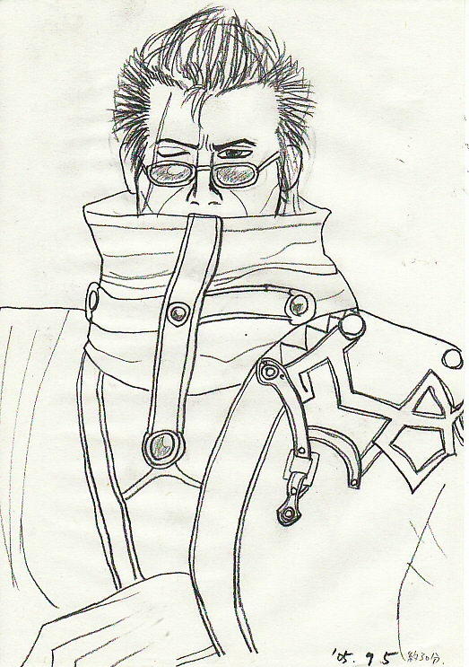 ゲーム「ファイナルファンタジー10」のアーロン です。30分で書いたらしいです(右下)。…初めて好きになったオッサンキャラでした。渋い!その存在が!