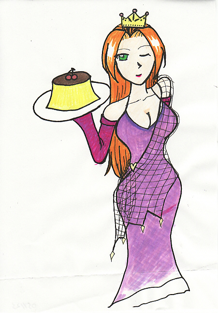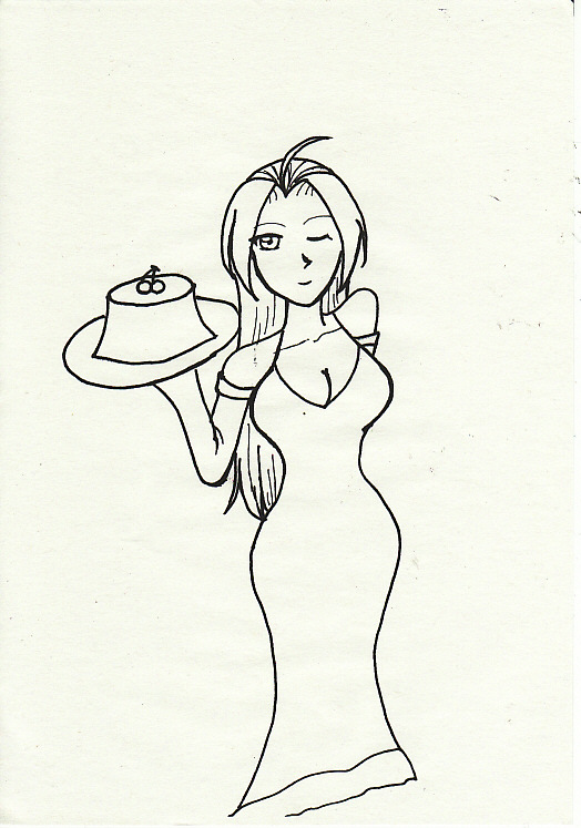 自分が描いた、おそらく初のオリキャラ、ルナ(仮名)さん。手に持ってるのはむっちんプリンです。『GS美神』の美神令子に憧れていたので、外見的要素をふんだんに盛り込んだキャラです。…内面は未定。