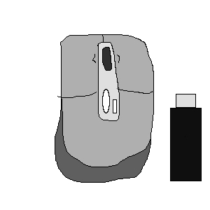 本日、ワイヤレスマウスを買って来ました。さっそくマウス(左)とレシーバー(右)の絵を描いてみました☆「株式会社バッファローコクヨサプライ」の「BSMLW01SVシルバー」ってやつです。機能満載なレーザーマウス君ですな。