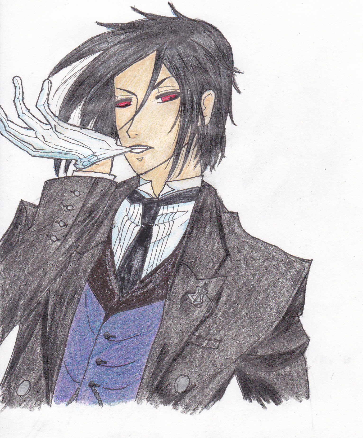【一枚目】黒執事4巻表紙のセバスチャン描いてみた。あのセクシーさを表現するのは難しいな…。