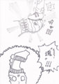イラストの上・下とも本編のワンシーンを模写り、色は手抜きあえてペンのみでモノトーンに仕上げました。楽しかったなあ(笑)。