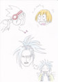 らくがきは気楽で楽しいなー(ぷはー)。「シャーマンキング」(武井宏之)1巻のらくがき模写。左上が麻倉葉、右上が小山田まん太、下が阿弥陀丸です。