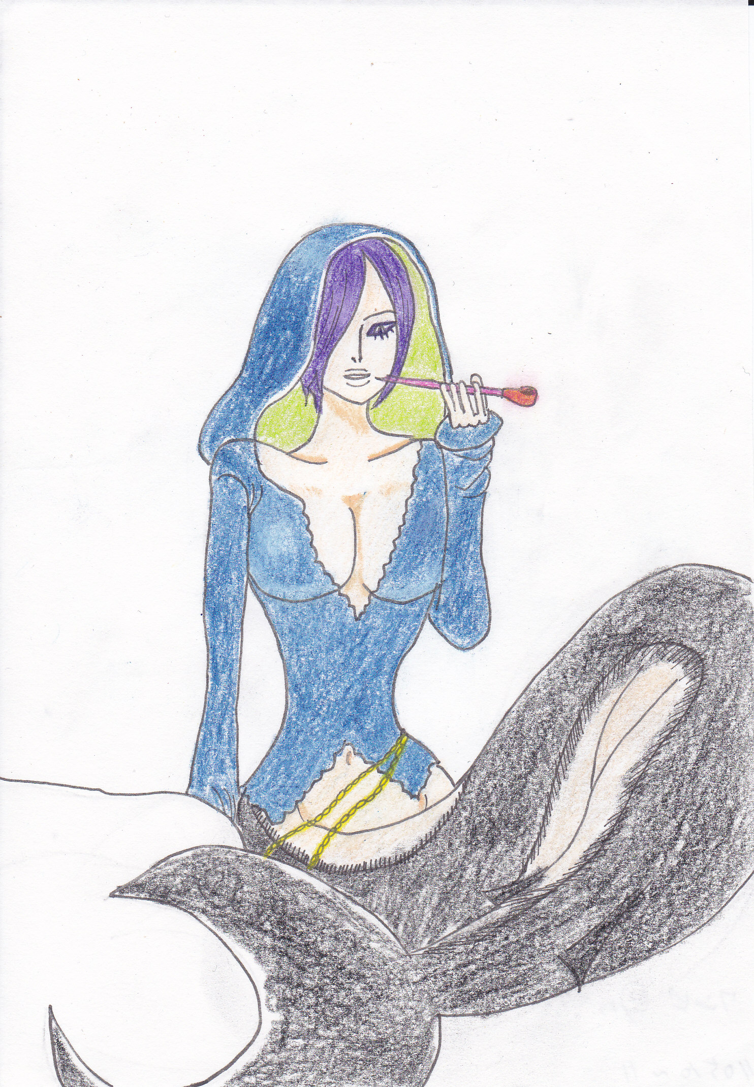 『ワンピース』62巻より、魚人島にあるマーメイドカフェの店長、マダム・シャーリーさん。配色はイメージです。…煙管の色、もうちょっと考えれば良かったかな。