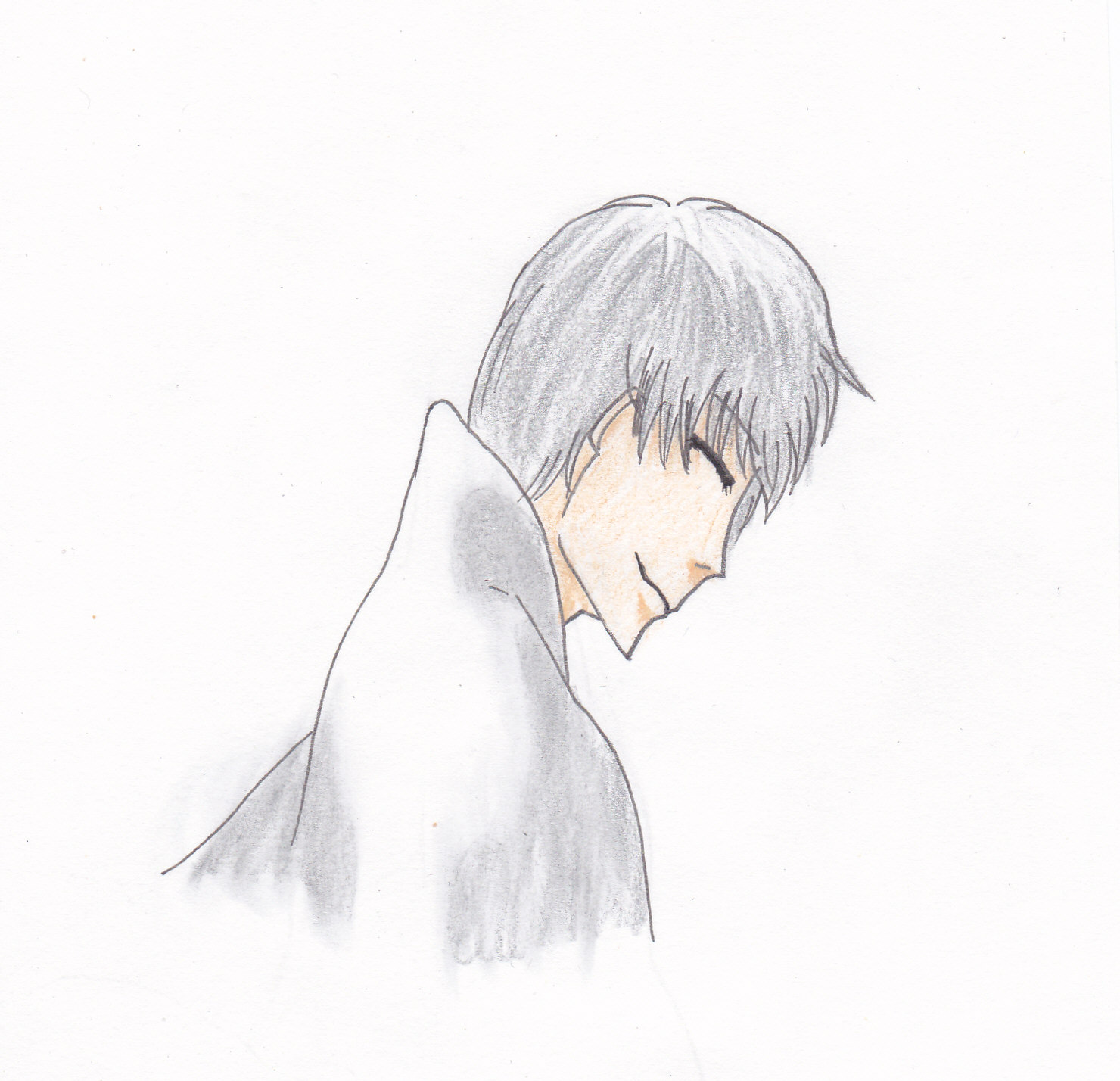 色鉛筆は銀色・肌色のみ使用、30分程で完成。目と口のラインが難しいなあ。