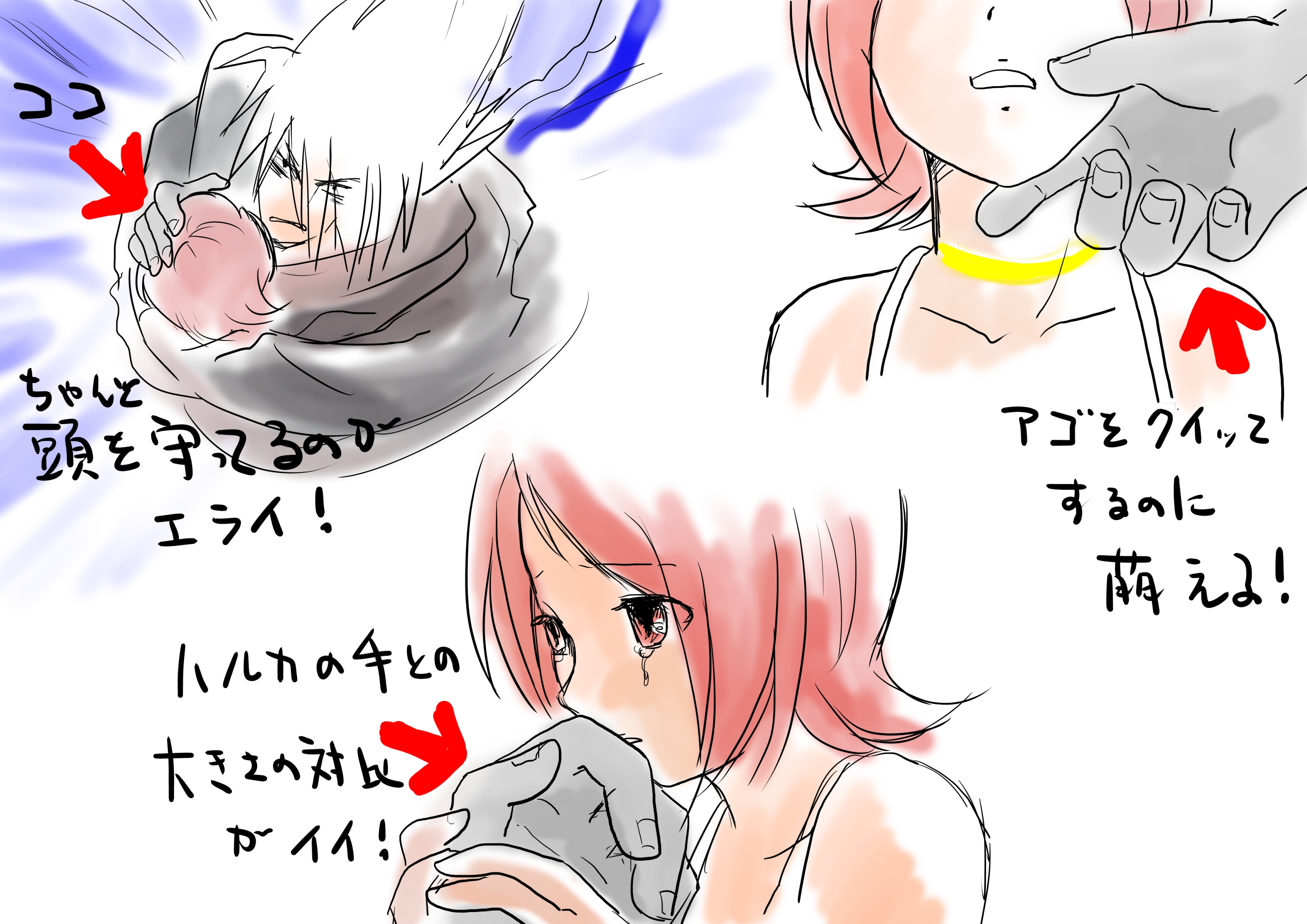右上…ラクリマに強制転送される時、カラスがハルカちゃんを庇って抱きしめるんだけど、その時にちゃんと頭部を守ってる。