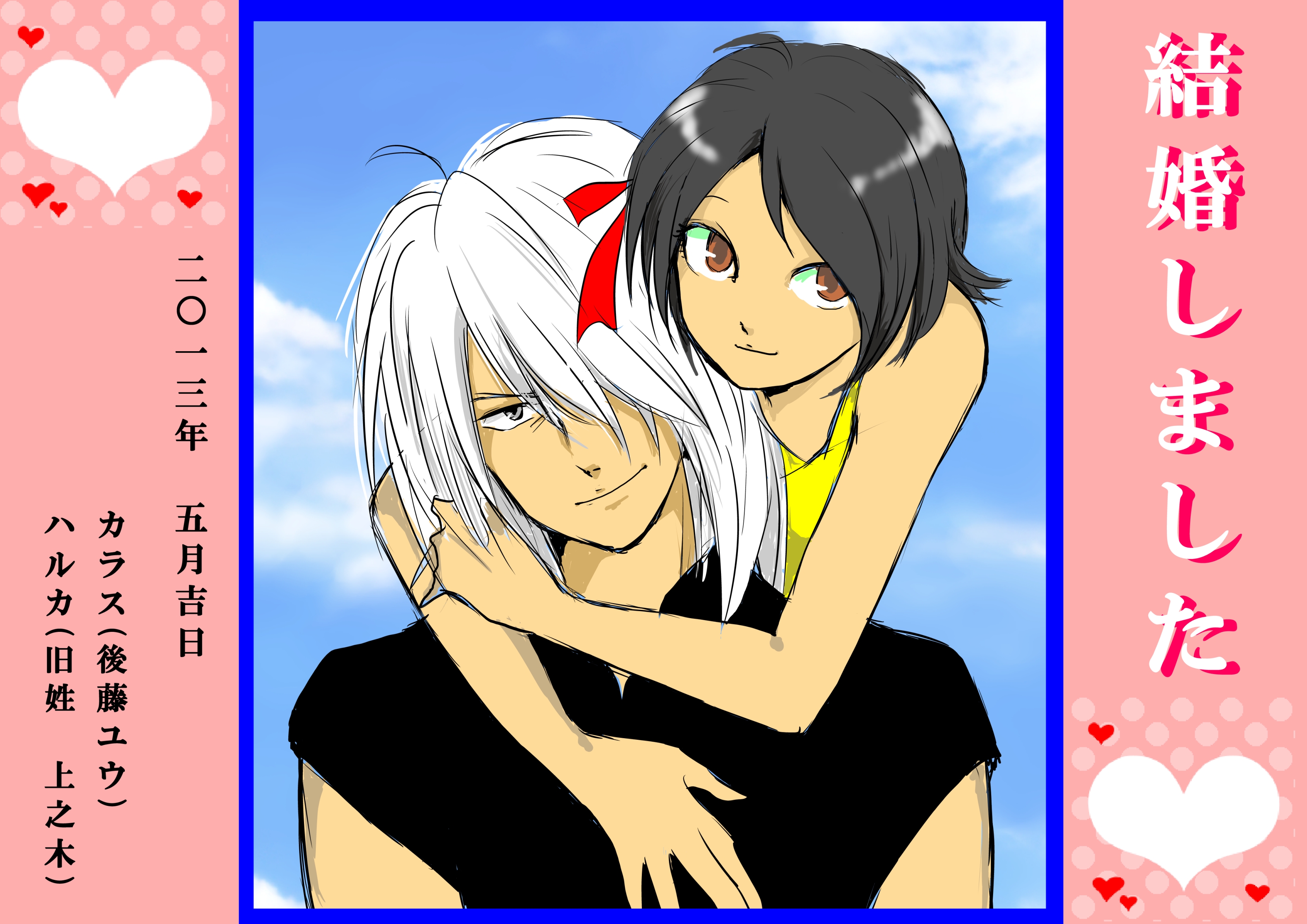 カラスとハルカ、同じアニメ同士のカップルです。いや~~ん、めでたい。